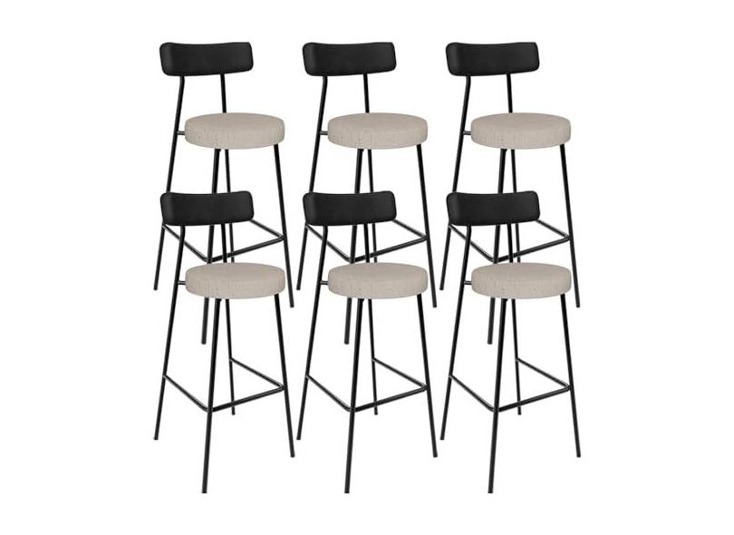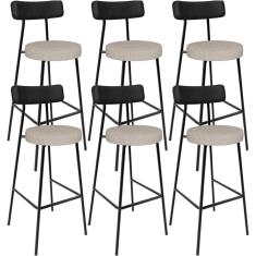 Kit 06 Banquetas Alta Bar Cozinha Sala De Jantar Milão L02 Couríssimo Preto Linho Bege - Lyam Decor