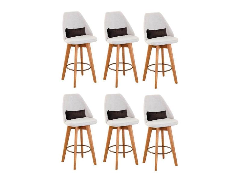O menor preço encontrado no Brasil para Kit 06 Banquetas Alta Maya Giratória Com Encosto Gourmet Linho Bege e Almofada Suede Marrom - Aurora Line atualmente é R$ 5.399,19.