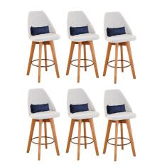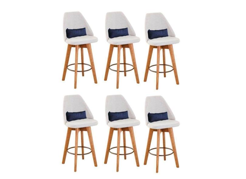 O menor preço encontrado no Brasil para Kit 06 Banquetas Alta Maya Giratória Com Encosto Linho Bege Claro e Almofada Suede Azul Marinho - Aurora Line atualmente é R$ 5.399,19.