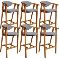 Kit 06 Banquetas Alta Para Cozinha Bancada Bar Sala De Jantar Fixa Cecília L02 Bouclê Cinza - Lyam