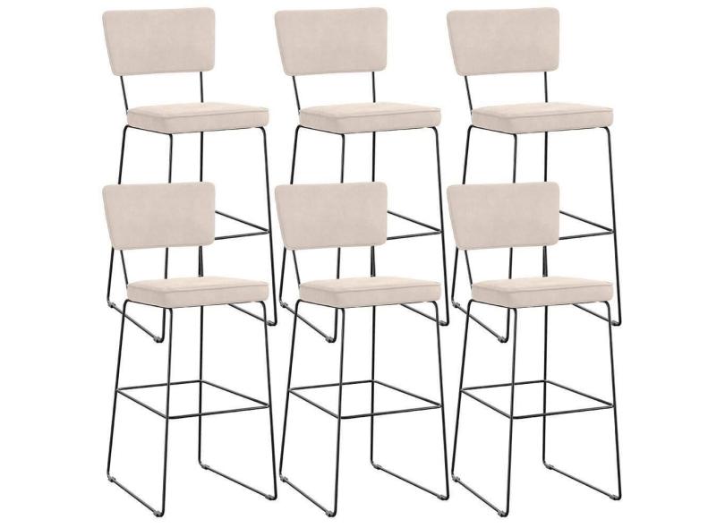 Kit 06 Banquetas Alta Para Cozinha Sala De Jantar Base Em Aço Allana L02 Suede Bege