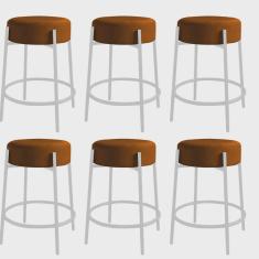 Kit 06 Banquetas Alta Sintra 65cm Redonda Ferro Branco Suede Terracota - Ahazzo Móveis