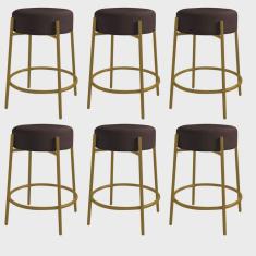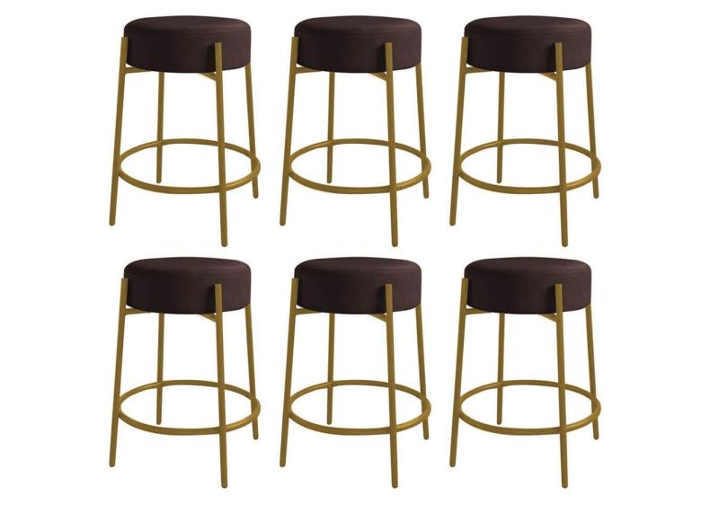 O menor preço encontrado no Brasil para Kit 06 Banquetas Alta Sintra 65cm Redonda Ferro Dourado Corino Marrom - Ahazzo Móveis atualmente é R$ 1.679,90.