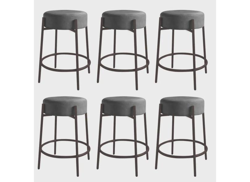 O menor preço encontrado no Brasil para Kit 06 Banquetas Alta Sintra 65cm Redonda Ferro Marrom Suede Cinza - Ahazzo Móveis atualmente é R$ 1.619,90.
