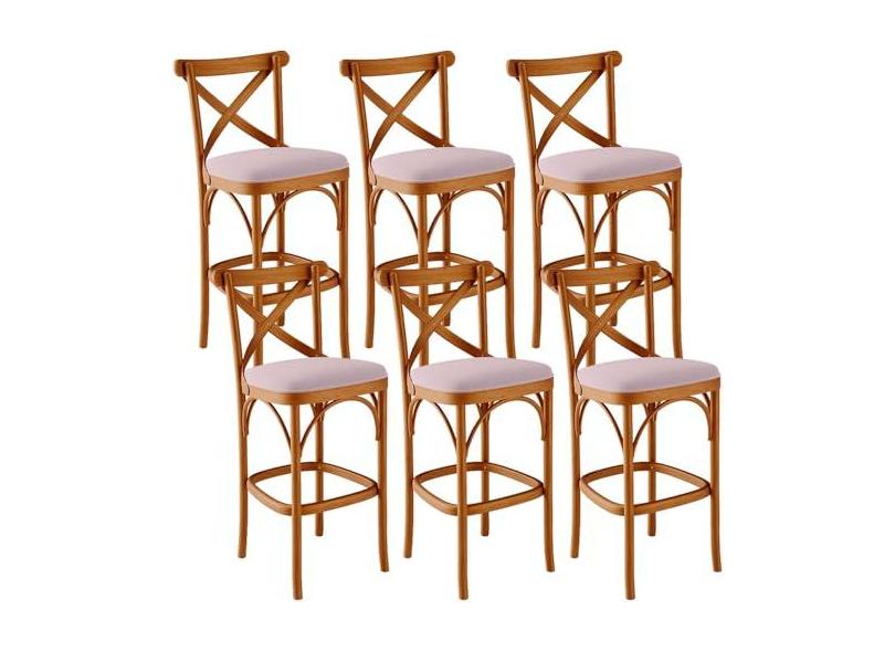 O menor preço encontrado no Brasil para Kit 06 Banquetas Altas Cozinha Bancada Bar Sala de Jantar Estofada Ávila L02 Suede Rosê - Lyam atualmente é R$ 4.801,06.