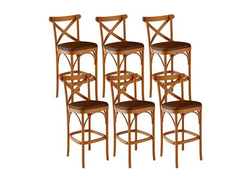 Kit 06 Banquetas Altas Cozinha Bancada Bar Sala Jantar Estofada Ávila L02 Couríssimo Marrom - Lyam