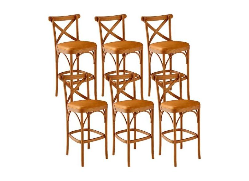 Kit 06 Banquetas Altas Cozinha Bancada Bar Sala Jantar Estofada Ávila L02 Couríssimo Whisky - Lyam