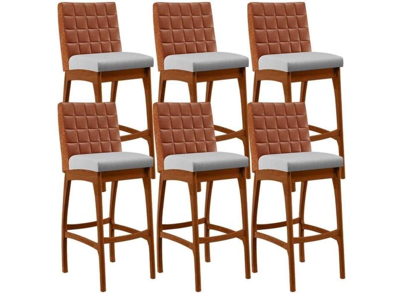 Kit 06 Banquetas Altas Cozinha Mila B04 Camel Linho Cinza