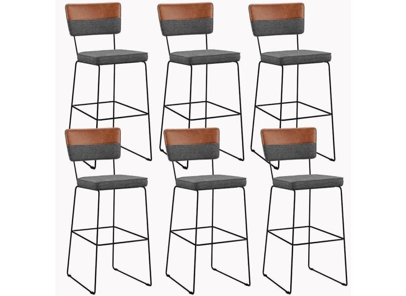 Kit 06 Banquetas Altas Faixa Camel Linho Cinza Escuro
