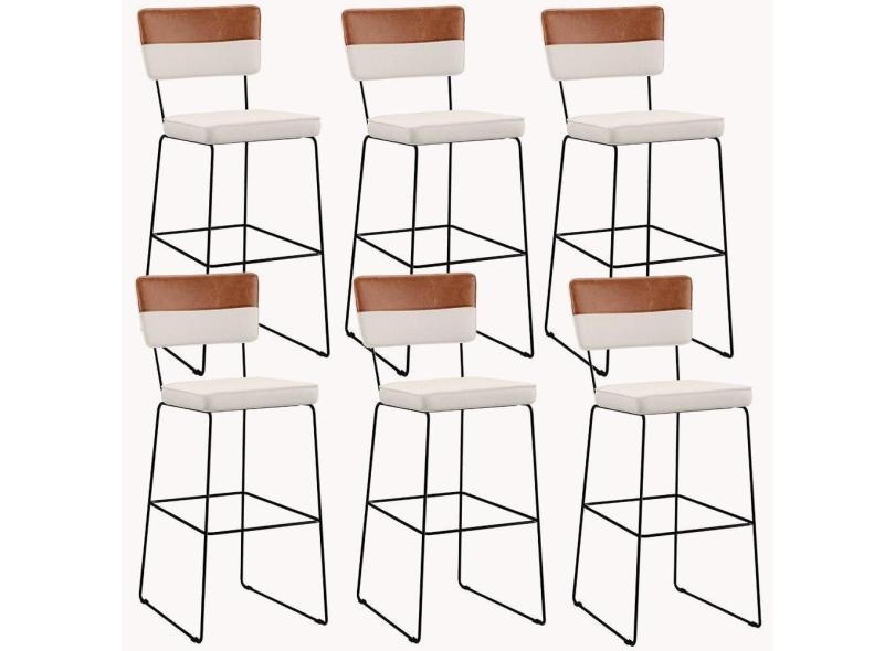 Kit 06 Banquetas Altas Faixa Camel Linho Cru