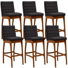 Kit 06 Banquetas Altas Mila Linho Chumbo