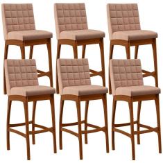 Kit 06 Banquetas Altas Mila Linho Rosê