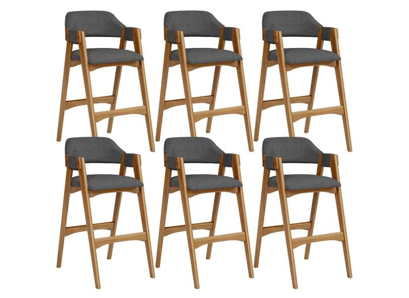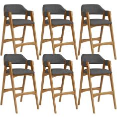 Kit 06 Banquetas Altas Para Cozinha Sala de Jantar Bar Suran L02 Linho Cinza Escuro - Lyam Decor