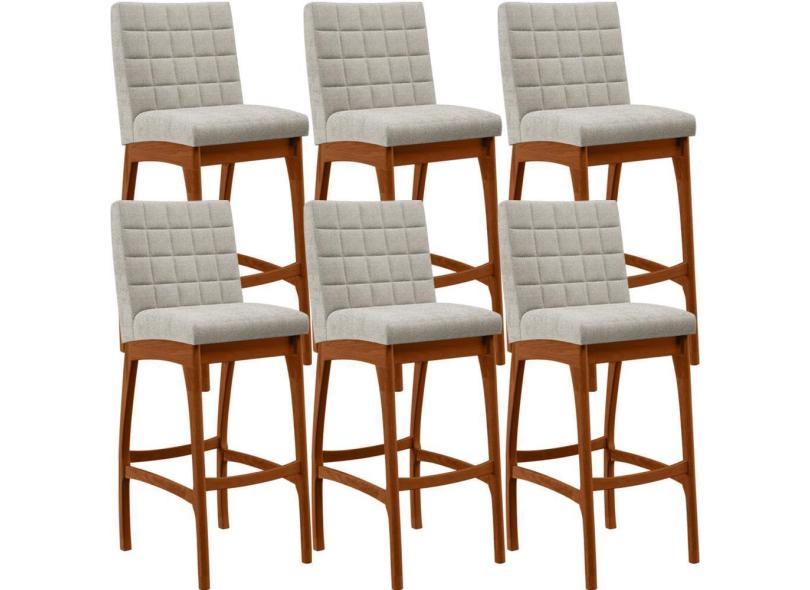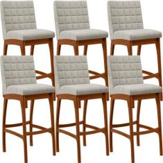 Kit 06 Banquetas Altas Para Cozinha Sala De Jantar Fixa Mila B04 Bouclê Creme - Lyam Decor