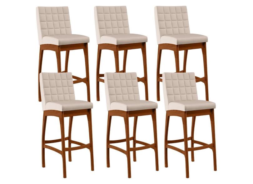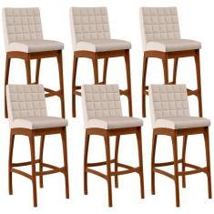 Kit 06 Banquetas Altas Para Cozinha Sala de Jantar Fixa Mila B04 Suede Bege - Lyam Decor