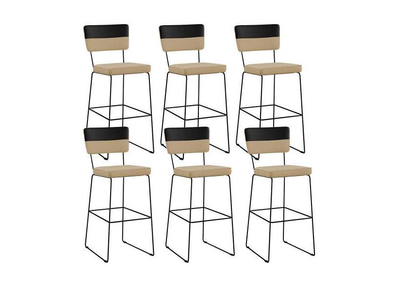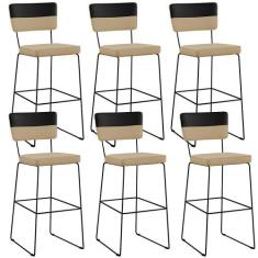Kit 06 Banquetas Altas Sala De Jantar Allana L02 Faixa Corano Preto Li