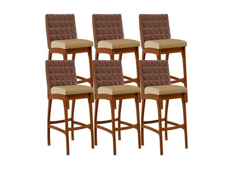 Kit 06 Banquetas Altas Sala De Jantar Fixa Mila B04 Corano Marrom Linh