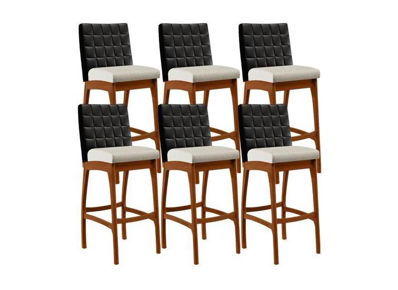 Kit 06 Banquetas Altas Sala De Jantar Fixa Mila B04 Corano Preto Linho