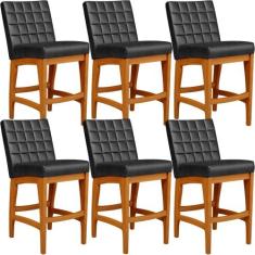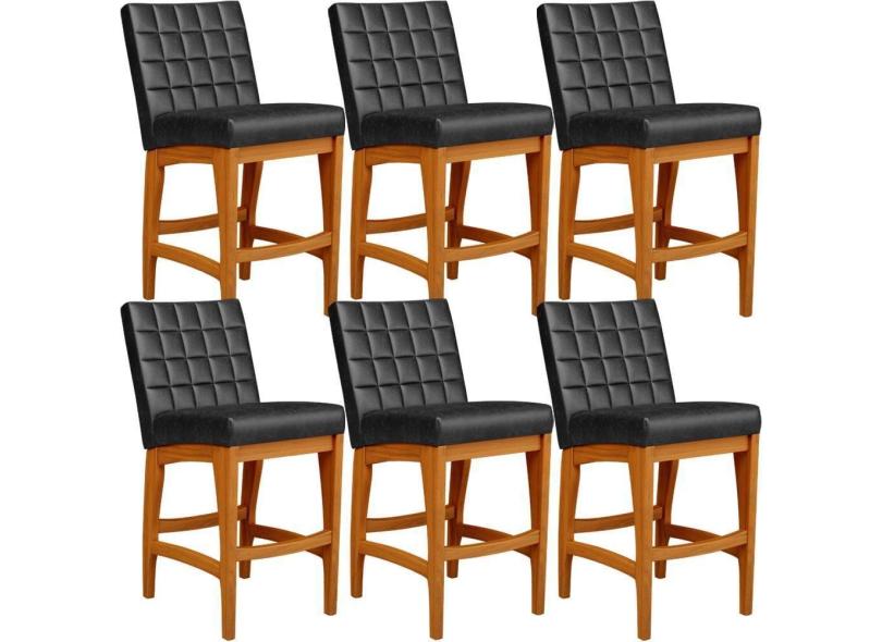 Kit 06 Banquetas Baixa Cozinha Bancada Fixa Mila L02 Preto
