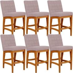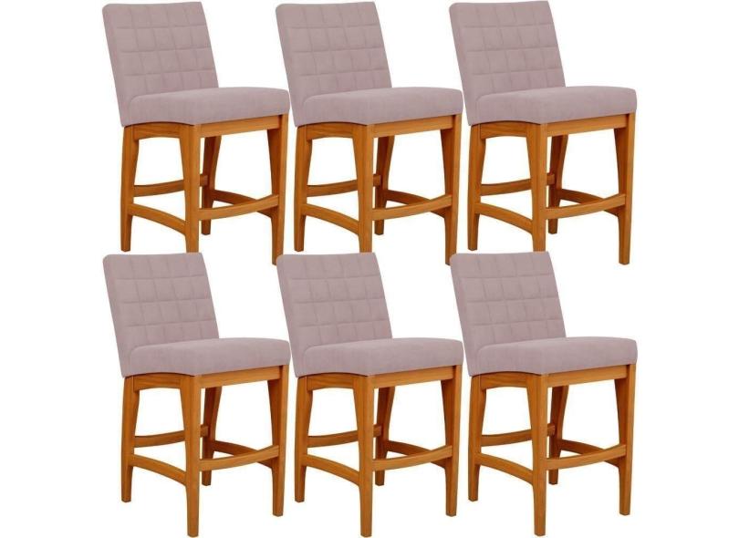 Kit 06 Banquetas Baixa Cozinha Bancada Fixa Mila L02 Rosê