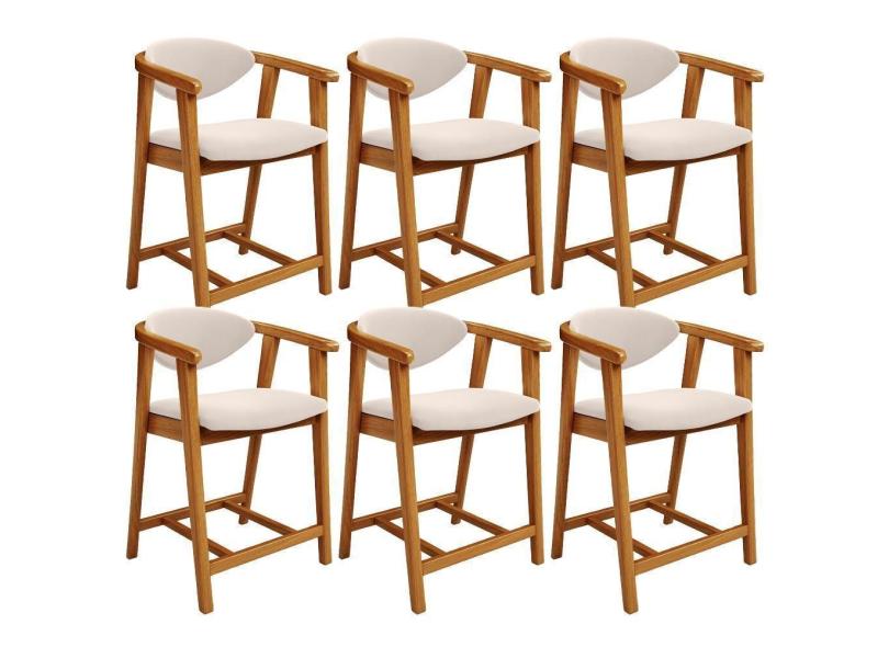 Kit 06 Banquetas Baixa Cozinha Sala De Jantar Bancada Cecília L02 Suede Bege - Lyam Decor
