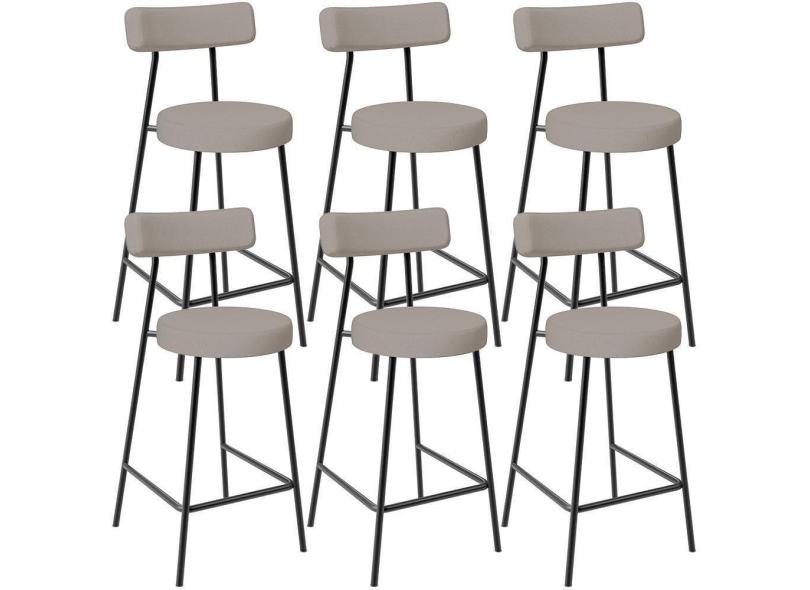 Kit 06 Banquetas Baixa Para Cozinha Sala De Jantar Bancada Milão L02 Linho Bege