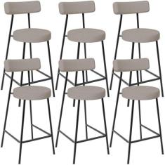 Kit 06 Banquetas Baixa Para Cozinha Sala De Jantar Bancada Milão L02 Linho Bege