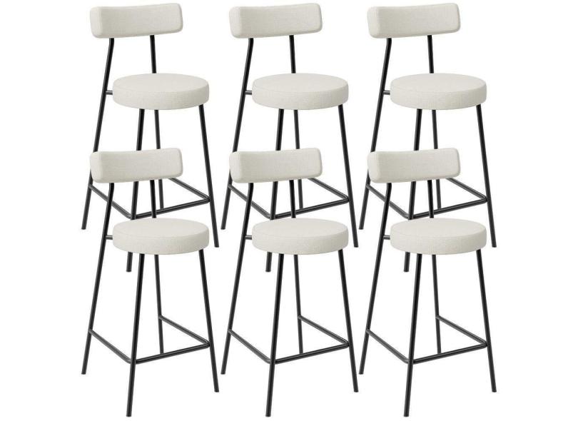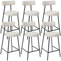 Kit 06 Banquetas Baixa Para Cozinha Sala De Jantar Bancada Milão L02 Linho Champagne