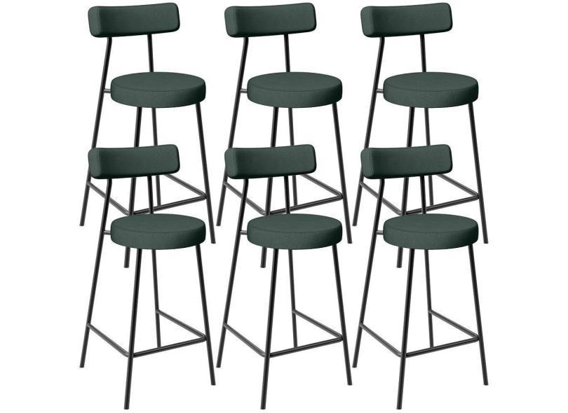 Kit 06 Banquetas Baixa Para Cozinha Sala De Jantar Bancada Milão L02 Linho Verde Musgo