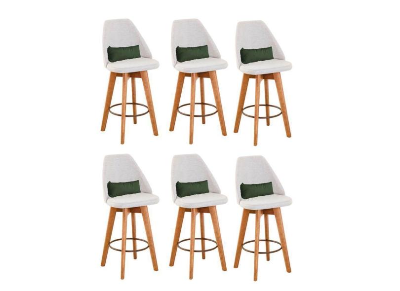 Kit 06 Banquetas Bege Claro E Almofada Suede Verde Musgo