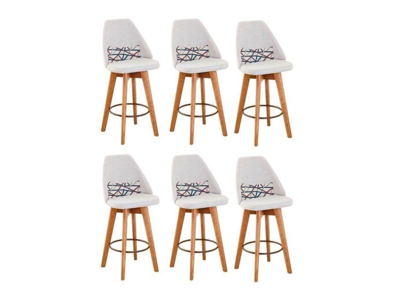 Kit 06 Banquetas Linho Bege E Almofada Linhas Coloridas