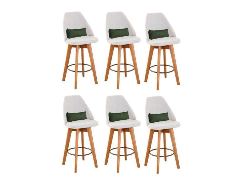 Kit 06 Banquetas Linho Bege E Almofada Suede Verde Musgo