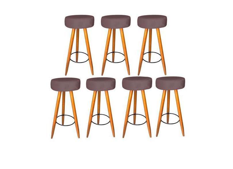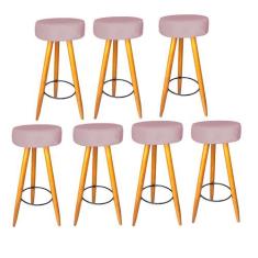 Kit 07 Banqueta Alta Flora Pés Palito em Madeira Caramelo para Bar Bi