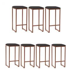 Kit 07 Banqueta Alta Lua Industrial Cozinha Bar Balcão Bistrô Ferro Bronze Suede - Ahazzo Móveis