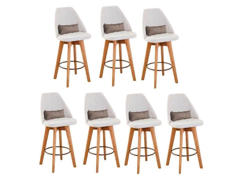 O menor preço encontrado no Brasil para Kit 07 Banquetas Alta Maya Giratória Com Encosto Gourmet Linho Bege e Almofada Corino Bege - Aurora Line atualmente é R$ 6.299,07.