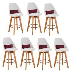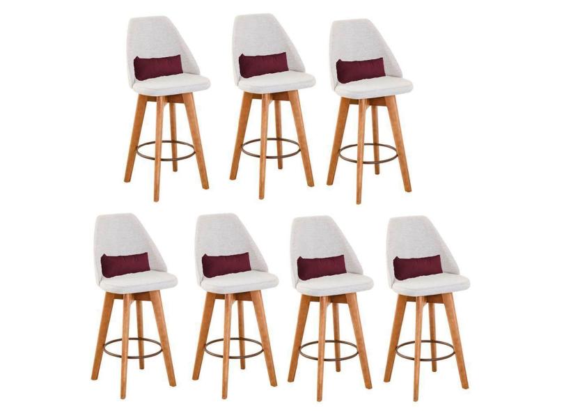 O menor preço encontrado no Brasil para Kit 07 Banquetas Alta Maya Giratória Com Encosto Gourmet Linho Bege e Almofada Sintético Bordô - Aurora Line atualmente é R$ 6.299,07.