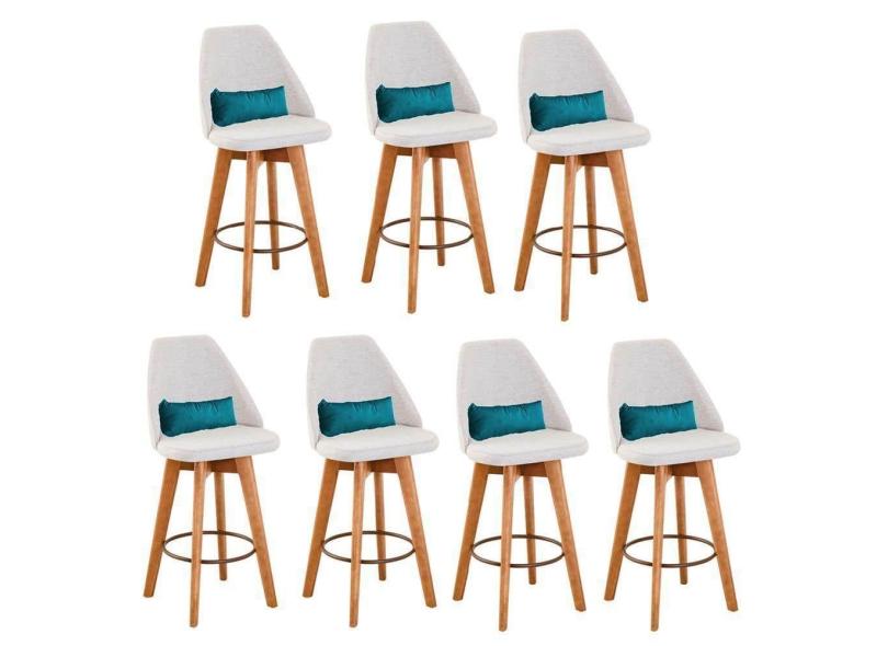 O menor preço encontrado no Brasil para Kit 07 Banquetas Alta Maya Giratória Com Encosto Gourmet Linho Bege e Almofada Suede Azul Turquesa - Aurora Line atualmente é R$ 6.299,07.