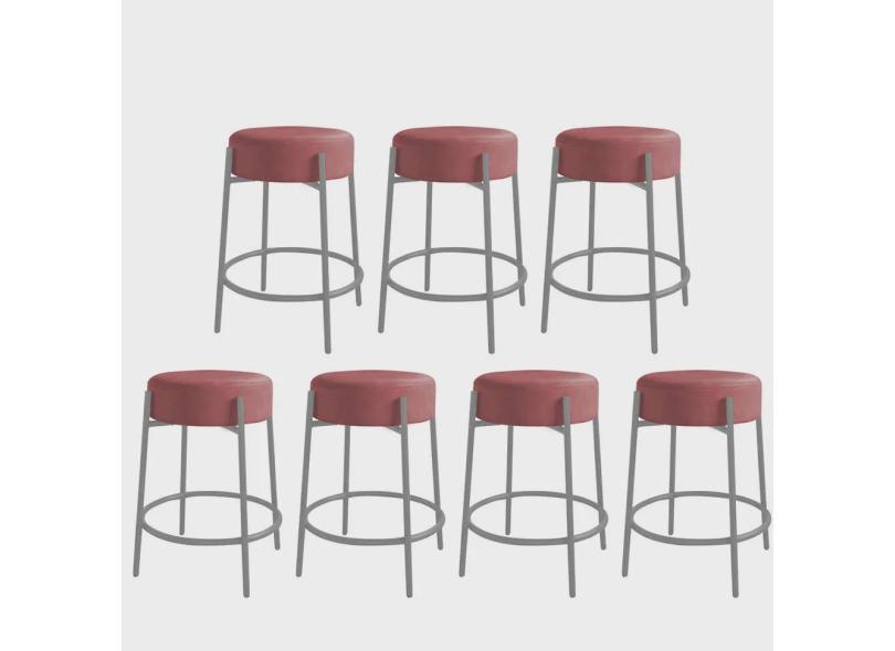 Kit 07 Banquetas Alta Sintra 65cm Redonda Ferro Cinza Suede Rose - Ahazzo Móveis