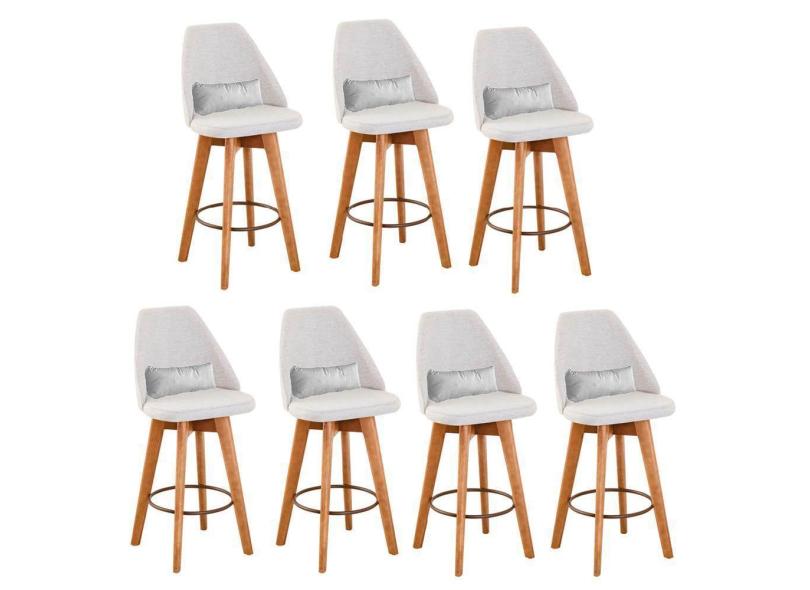 Kit 07 Banquetas Linho Bege E Almofada Branco
