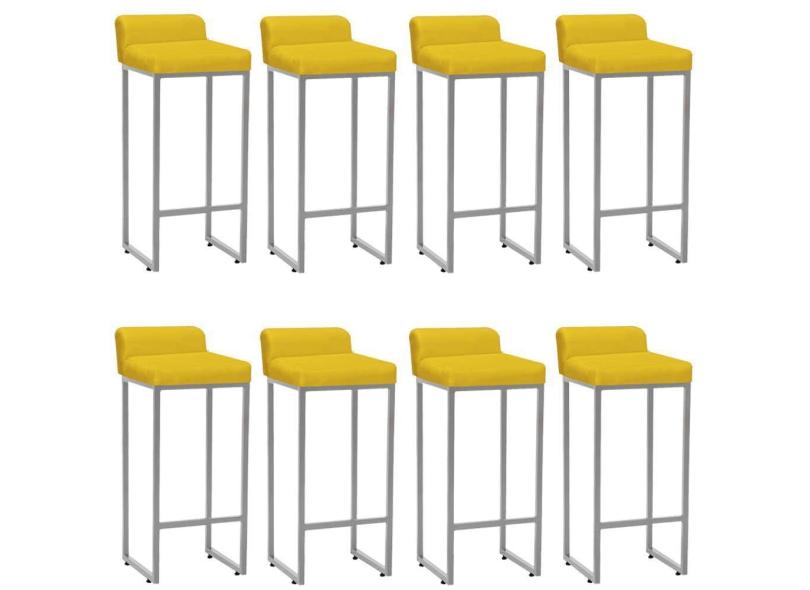 Kit 08 Banqueta Alta Mia Com Encosto Cozinha Bistrô Bar Balcão Ferro Prata Sintético Amarelo - Ahazzo Móveis
