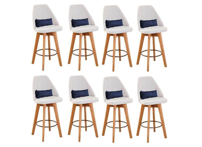 O menor preço encontrado no Brasil para Kit 08 Banquetas Alta Maya Giratória Com Encosto Gourmet Linho Bege e Almofada Corino Azul Marinho - Aurora Line atualmente é R$ 7.198,97.