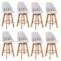 Kit 08 Banquetas Alta Maya Giratória Com Encosto Linho Bege Claro e Almofada Mosaico - Aurora Line
