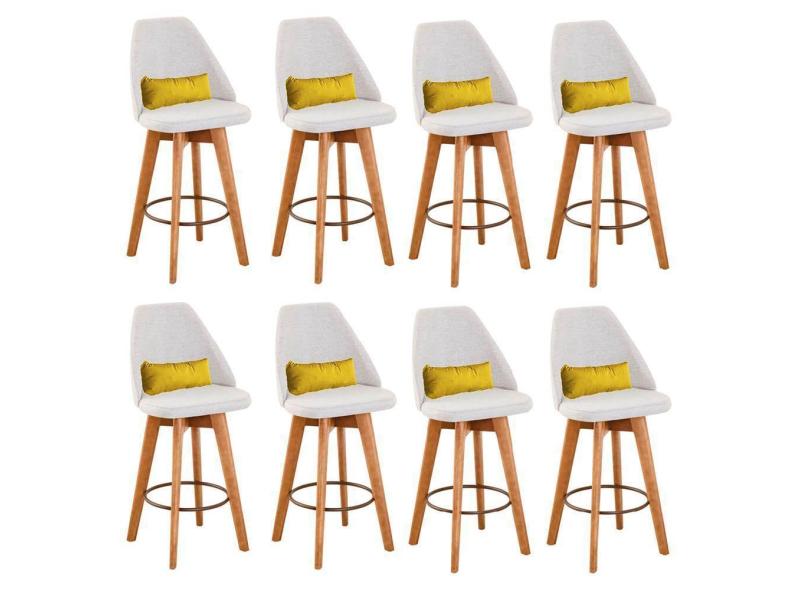 O menor preço encontrado no Brasil para Kit 08 Banquetas Alta Maya Giratória Com Encosto Linho Bege Claro e Almofada Sintético Amarelo - Aurora Line atualmente é R$ 7.198,97.
