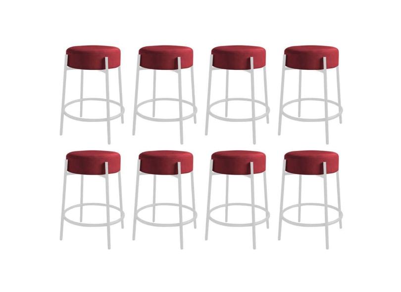 O menor preço encontrado no Brasil para Kit 08 Banquetas Alta Sintra 65cm Redonda Ferro Branco Suede Vermelho - Ahazzo Móveis atualmente é R$ 2.159,90.
