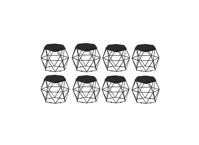 Kit 08 Puff Banqueta Aramado Mila Base Preta Hexágono Suede Preto - DA