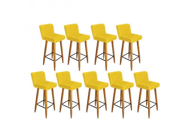 Kit 09 Banqueta Alta Com Encosto Lana Para Cozinha Bar Balcão Bistrô Pé Palito Castanho Suede - Ahazzo Móveis