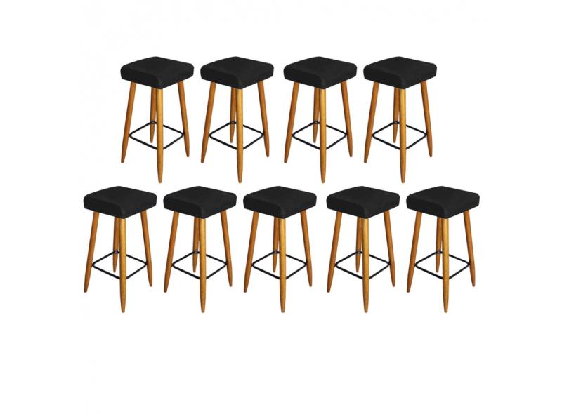 Kit 09 Banqueta Alta Quadrado Luma Para Cozinha Bar Balcão Bistrô Pé Palito Castanho Suede - Ahazzo Móveis