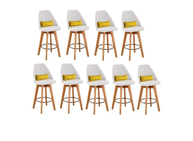 O menor preço encontrado no Brasil para Kit 09 Banquetas Alta Maya Giratória Com Encosto Gourmet Linho Bege e Almofada Corino Amarelo - Aurora Line atualmente é R$ 8.098,86.