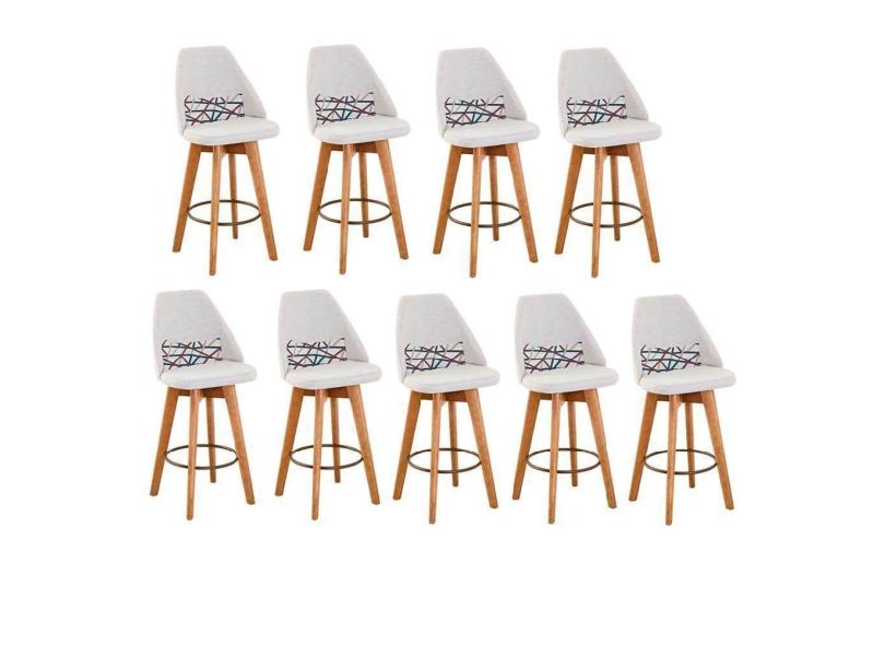 O menor preço encontrado no Brasil para Kit 09 Banquetas Alta Maya Giratória Com Encosto Gourmet Linho Bege e Almofada Linhas Coloridas - Aurora Line atualmente é R$ 8.098,86.