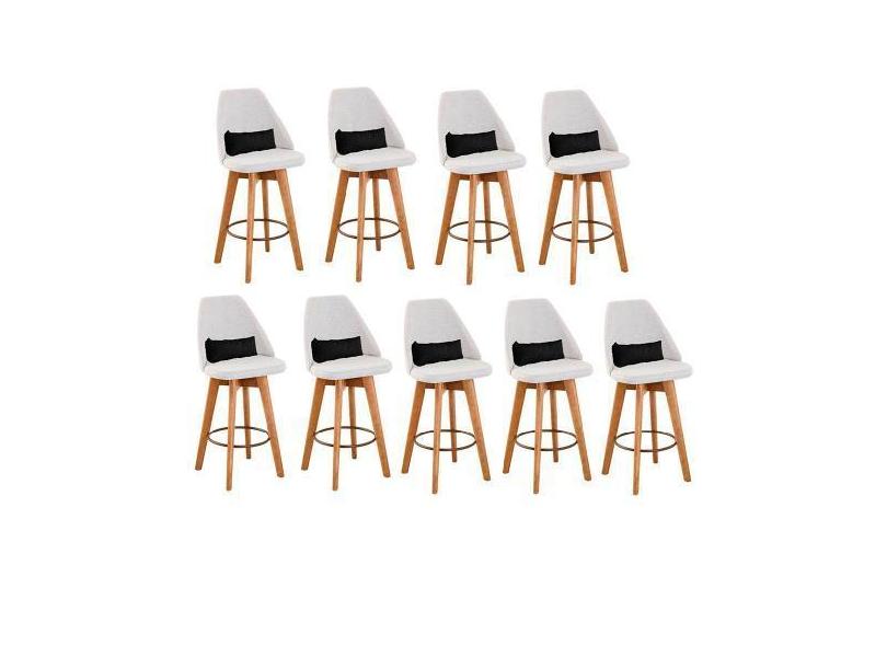 O menor preço encontrado no Brasil para Kit 09 Banquetas Alta Maya Giratória Com Encosto Linho Bege Claro e Al atualmente é R$ 6.927,61.